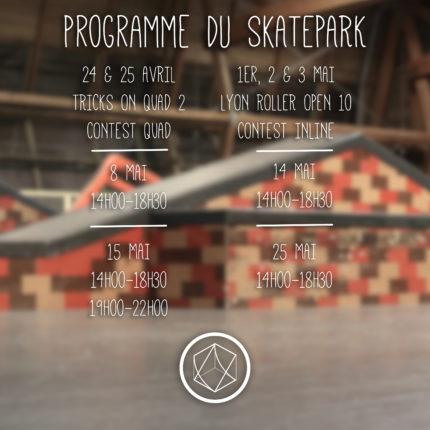 Les prochaines semaines vont êtres chargées au Skatepark de Lyon, alors ouvrez vos agendas!